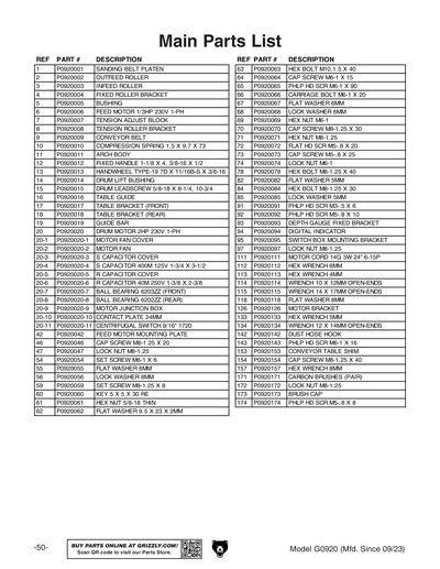 Parts for G0920 - 22" Variable-Speed Open-Ended Drum Sander